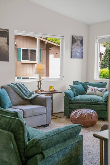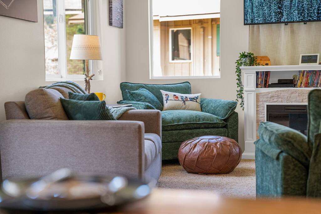 At Alpine Family Haus your group will be close to everything when you stay at this centrally-located 2nd story condo, one mile walk to restaurants, shops and activities. The condo is located across the street from the Alpine Roller Coaster, the kids will love that! It is truly a home away from home with a fully stocked kitchen, comfy beds for everyone and smart TVs. Wake up and enjoy a nice cup of coffee on the spacious balcony, a quiet moment, and enjoy the Cascade Mountain view’s.